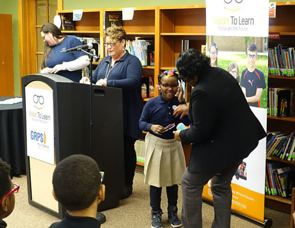 An estimated 3,000 children in Grand Rapids go to school every day without the glasses they need to see the board, read a book, or participate in class. Through this collaboration, every student in GRPS will be provided a vision screening, eye exam, and – if needed – a pair of glasses, free of charge.